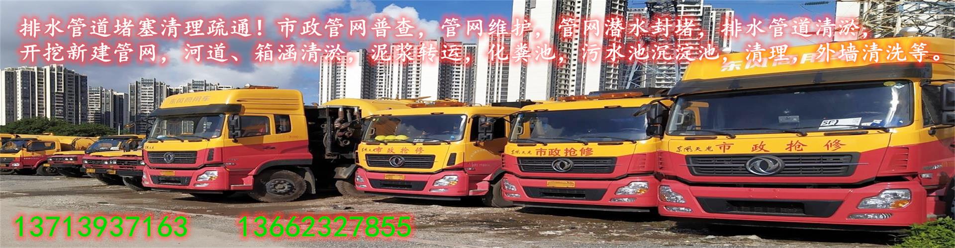 管道清淤/市政管道清淤/箱涵方渠清淤/河道魚塘清淤/化糞池清理/沉淀池清理/隔油池清理/污水池清理/管道疏通/外墻清洗/管道開挖或非開挖修復